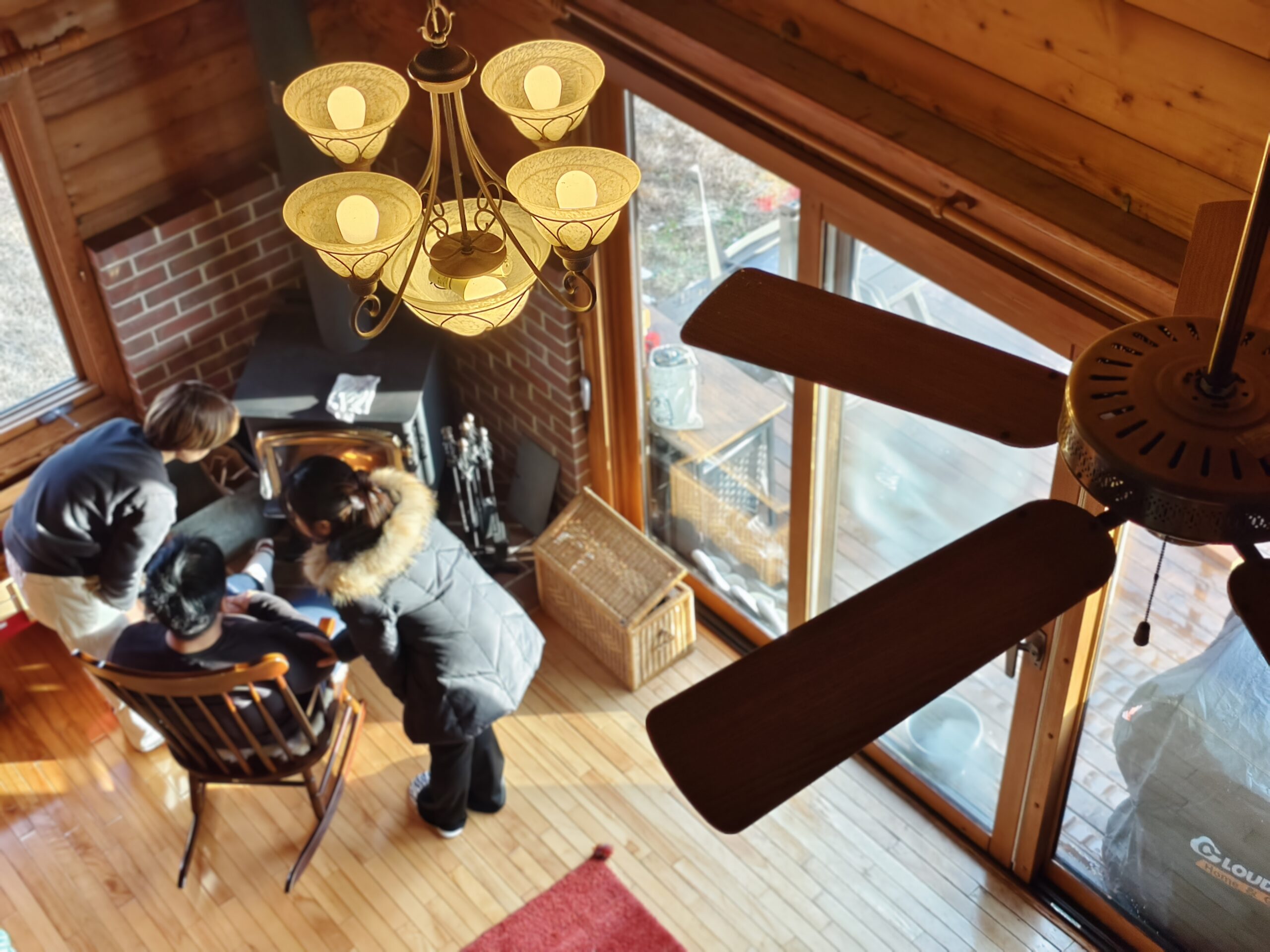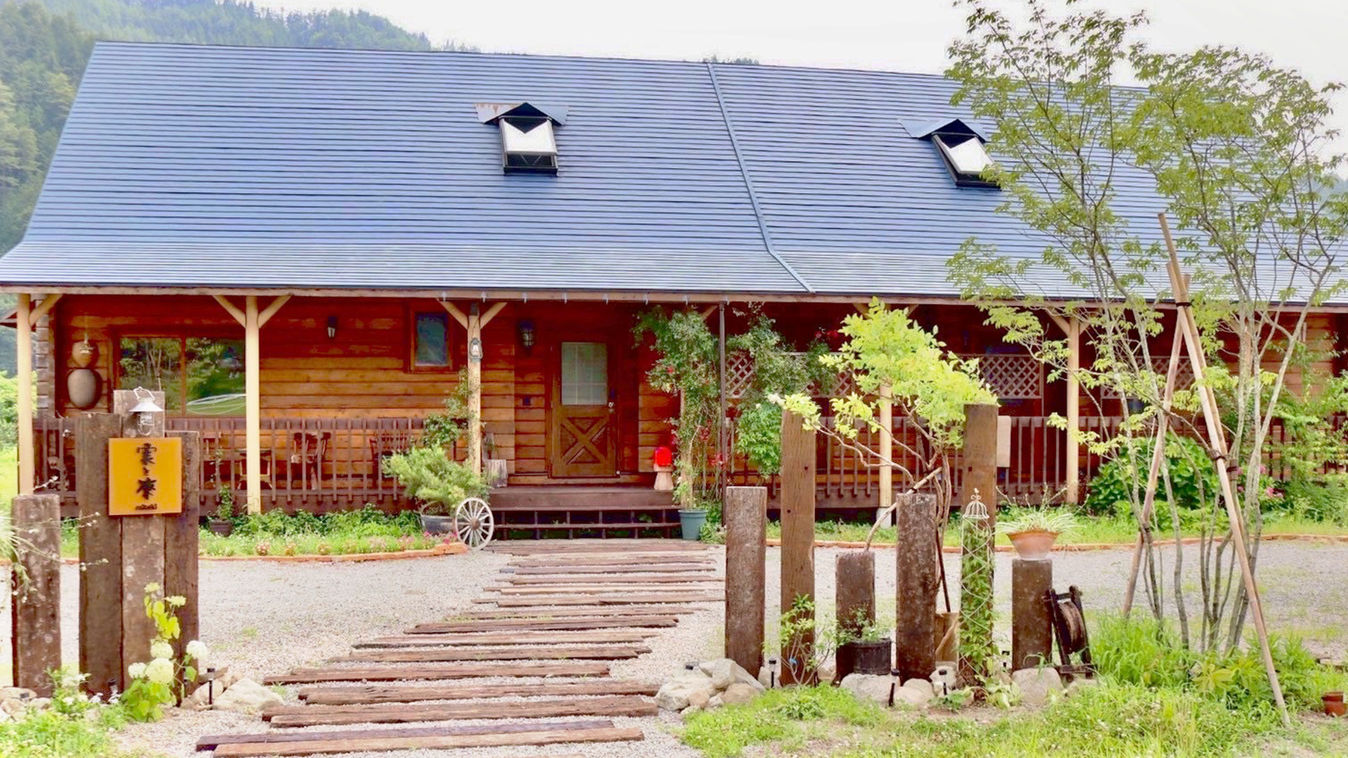 飛騨高山の山あいに佇む、一棟貸しのログハウス「実と來」。水鏡に映る灯り、虫の声、深い森の気配。