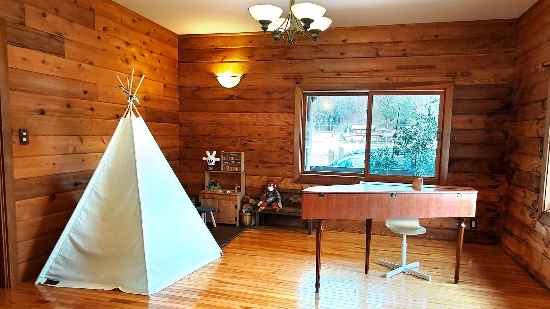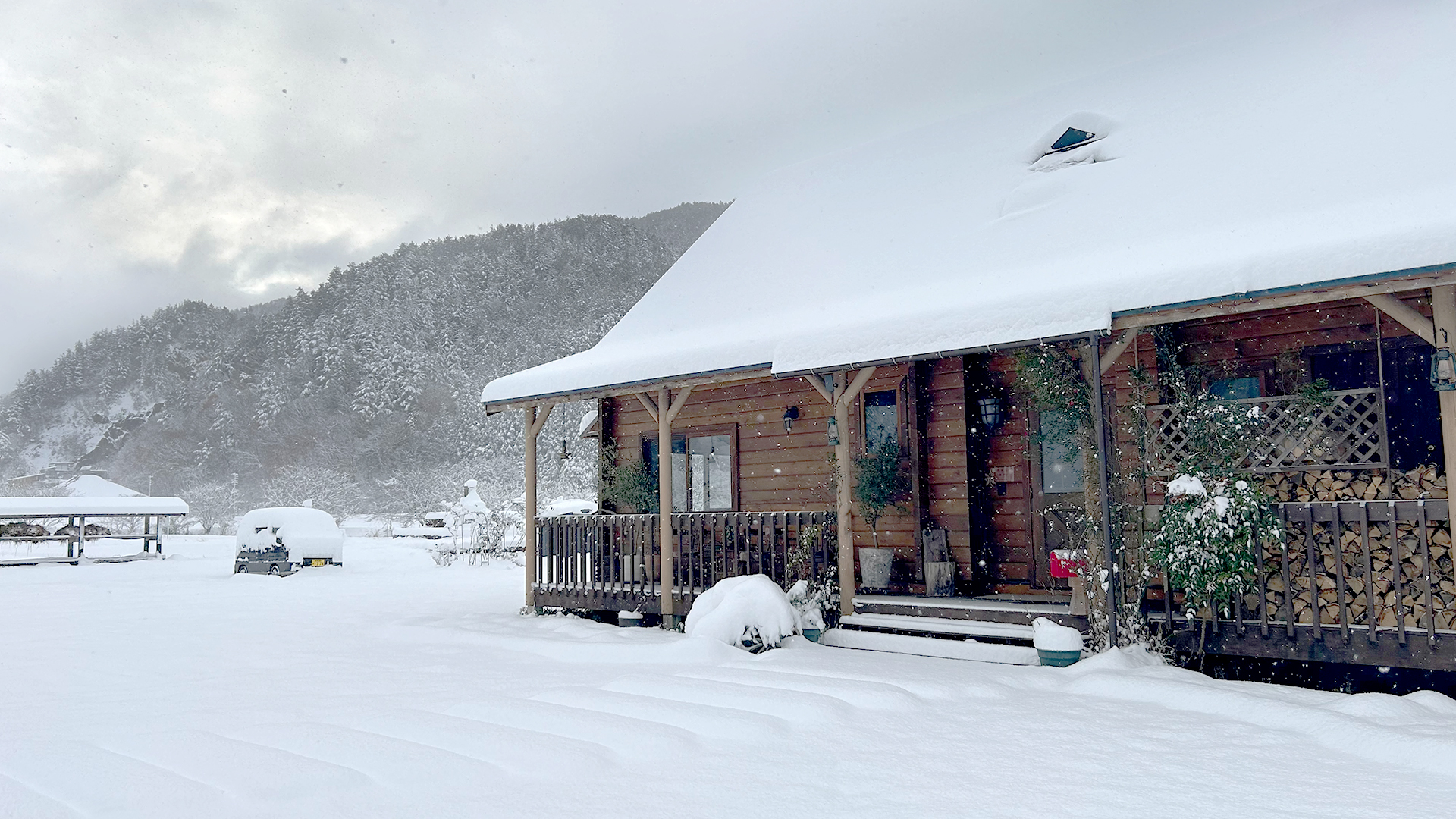 Tucked away in the mountains of Hida-Takayama, the private log cabin “Mi to Ki.”